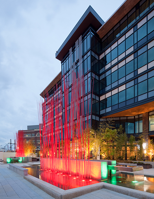 Home Plate Center is a LEED Gold, two-building, flex-use, class-A retail and commercial office project located in Seattle’s Stadium District. The property sits blocks from Seattle’s redeveloping waterfront and is conveniently situated at the intersection of the region’s major public transportation networks, including the I-90 and I-5 freeways, light rail, regional rail, ferry and bus systems. It is located at the nexus of the Pioneer Square Historical Area and the SODO industrial district of Seattle. Due west from two professional sports stadiums, Safeco Field (home of the Seattle Mariners) and CenturyLink Field (home to the Seattle Seahawks and Seattle Sounders, FC) it is also within walking distance of Starbucks World Headquarters and the Seattle Waterfront.